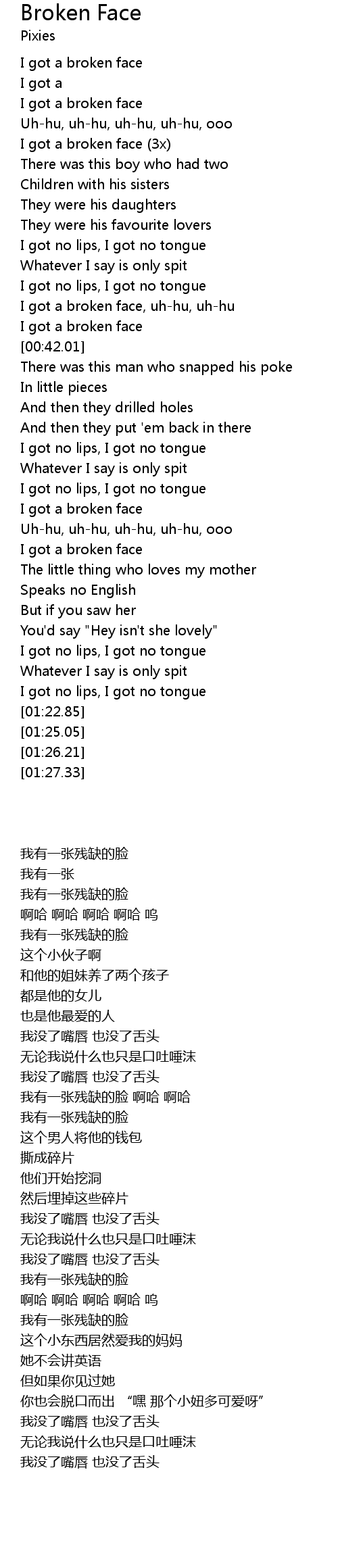 I got a broken face (3x) |