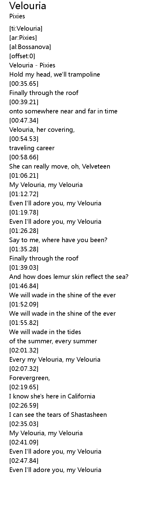 | [02:02.07] | Every my Velouria, my Velouria |