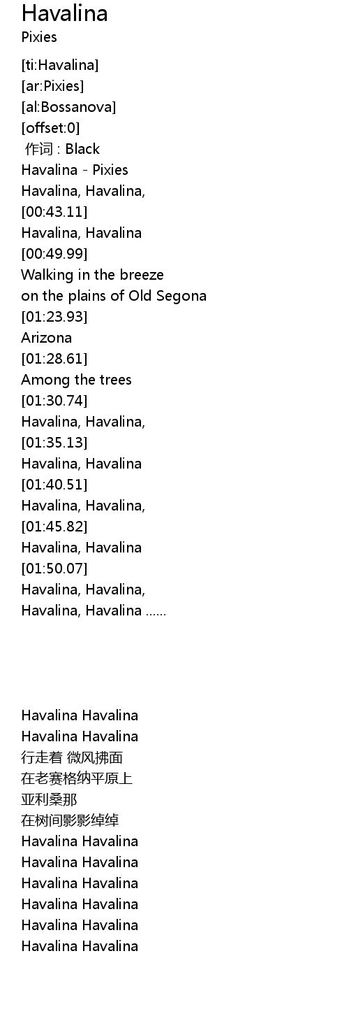 | [00:38.74] | Havalina, Havalina, |
