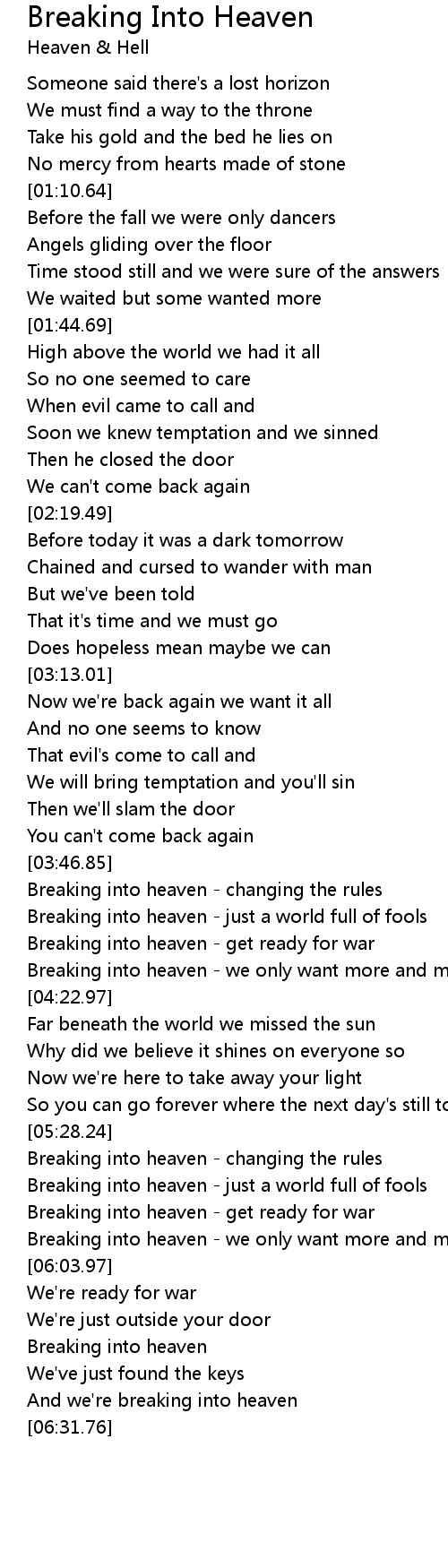Breaking into heaven |