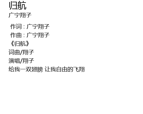 | [00:46.888] | 给我一双翅膀 让我自由的飞翔 |