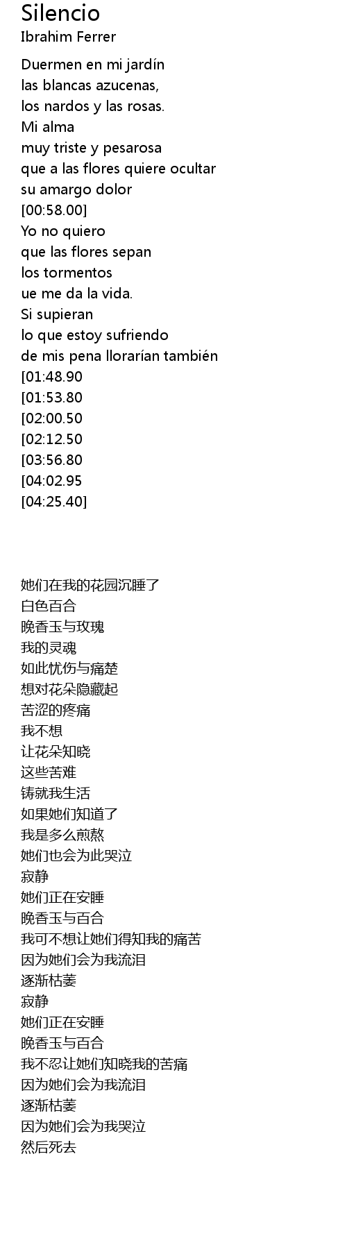 | [03:34.20][02:00.50] | los nardos y las azucenas. |