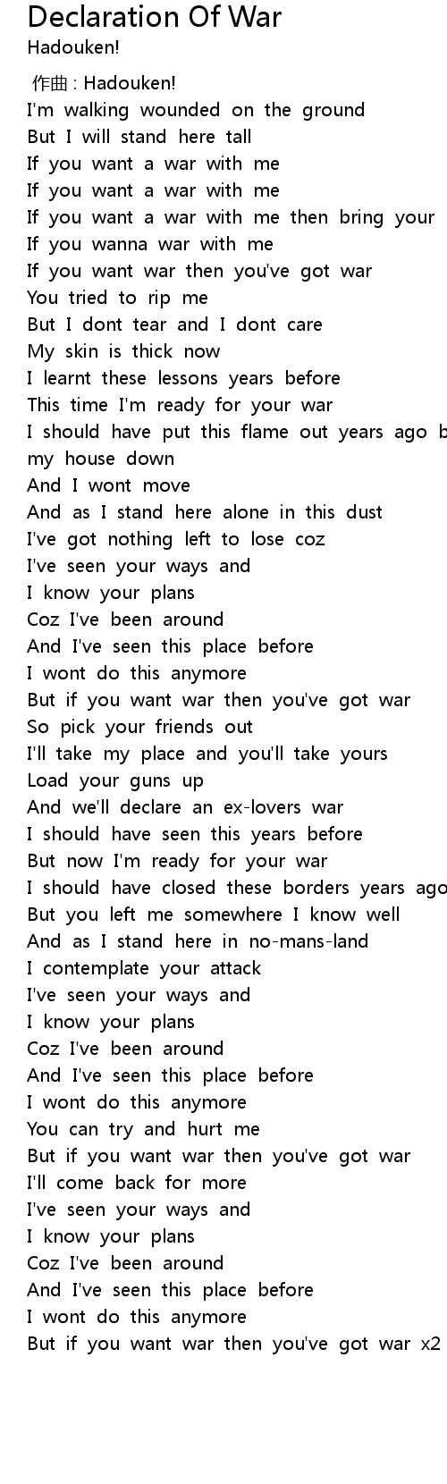 | [01:18.43] | And we'll declare an ex-lovers war |