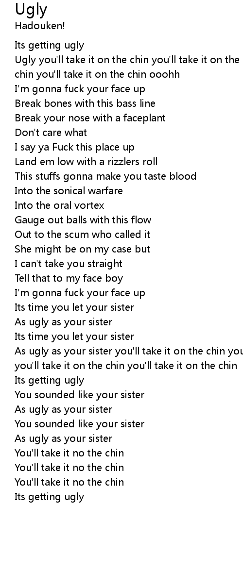 As ugly as your sister you'll take it on the chin you'll take it on the chin you'll take it on the chin you'll take it on the chin |