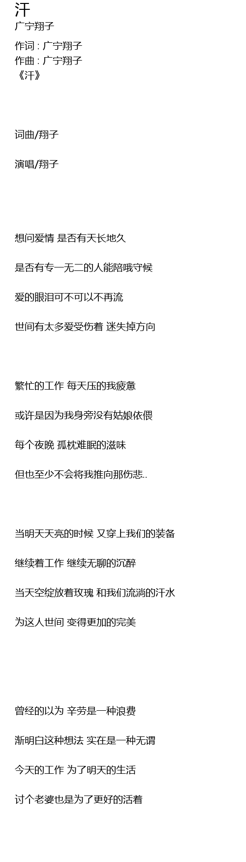 作词 : 广宁翔子