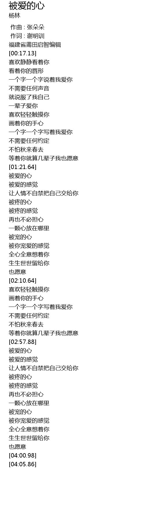 | [03:00.26] | 被爱的心 |