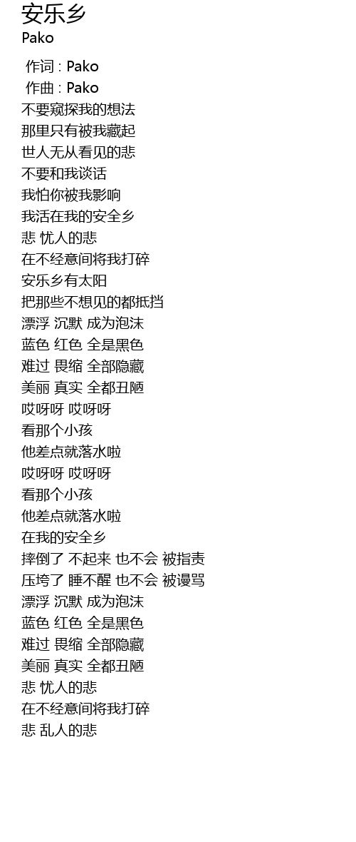 | [00:00.000] | 作词 : Pako |
