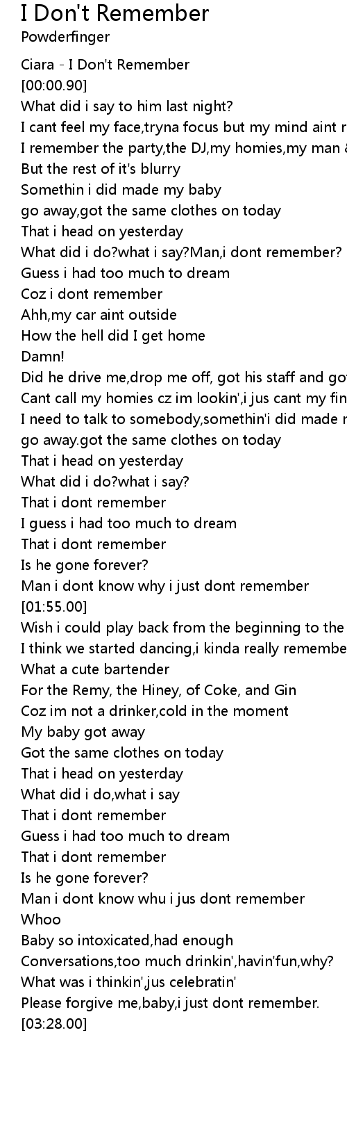 Please forgive me,baby,i just dont remember. |