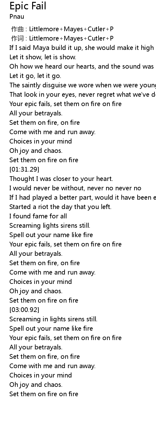 | [00:58.79] | Your epic fails, set them on fire on fire |