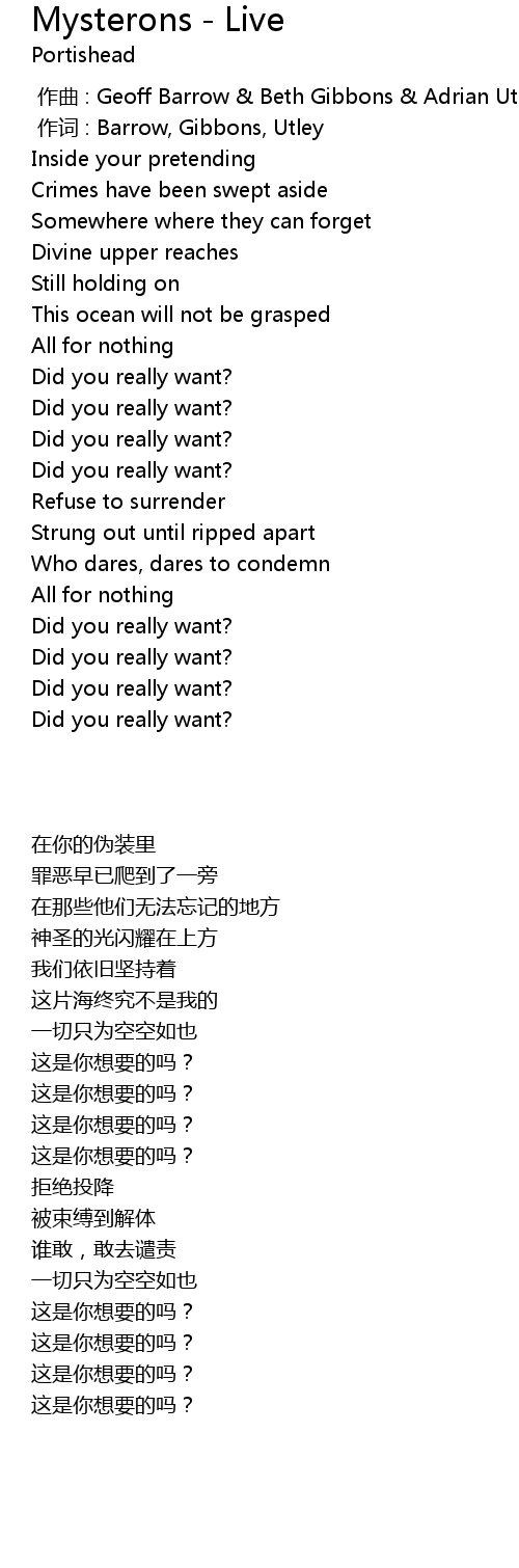 | [00:00.00] | zuò qǔ : Geoff Barrow Beth Gibbons Adrian Utley |