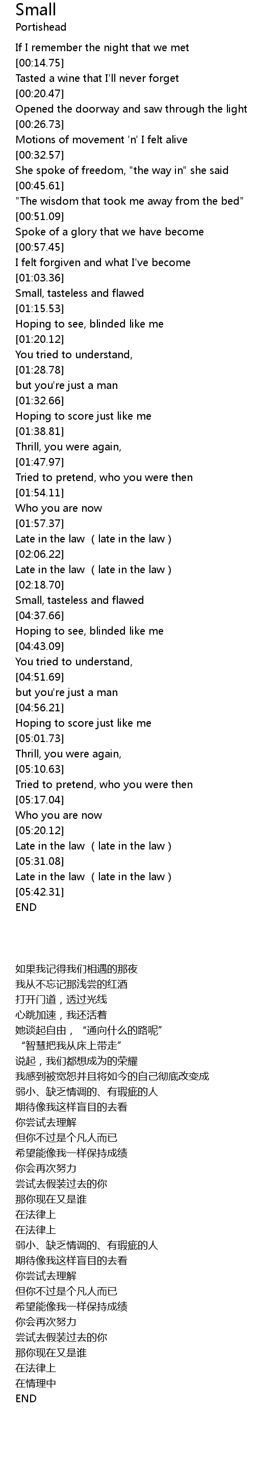 | [00:46.25] | "The wisdom that took me away from the bed" |