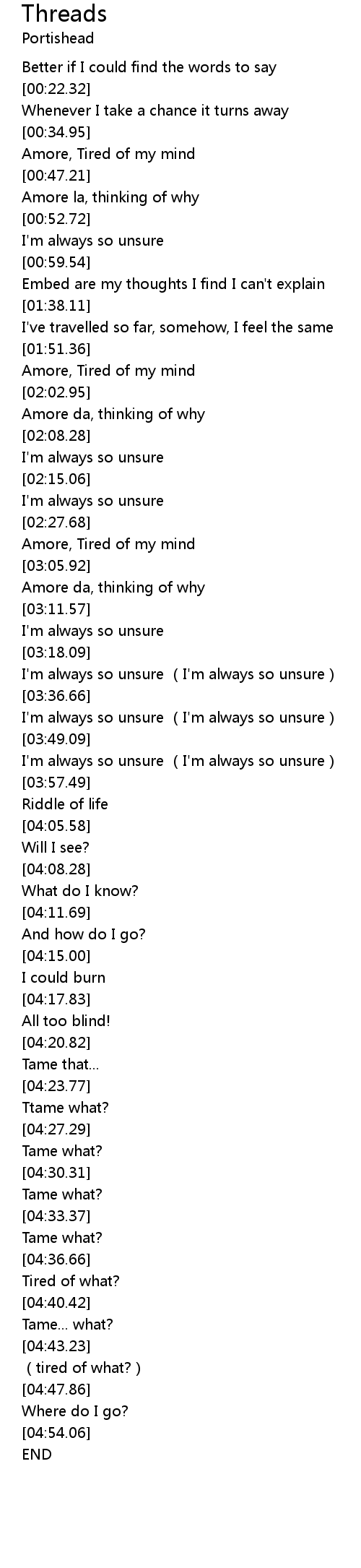 | [03:51.27] | I' m always so unsure I' m always so unsure |