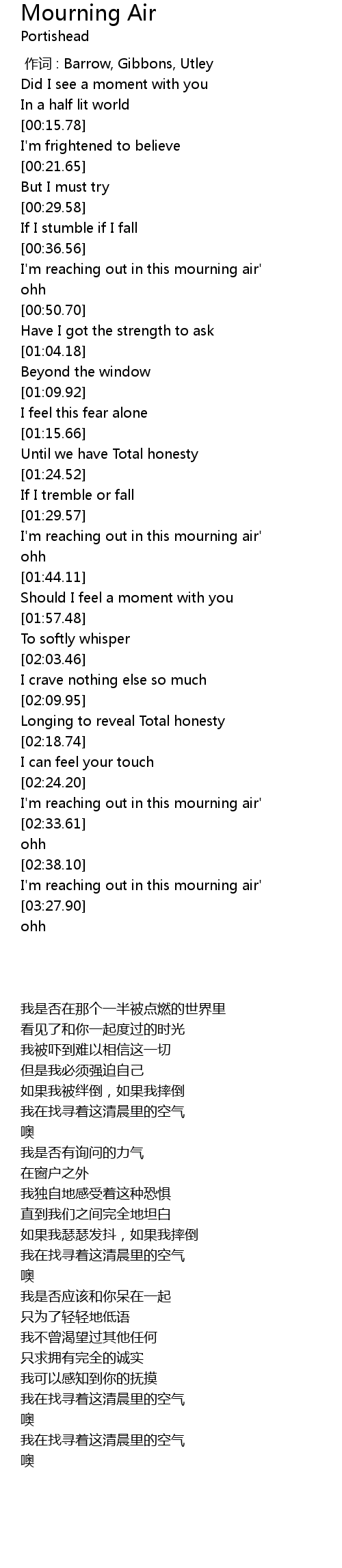 | [00:38.31] | I'm reaching out in this mourning air' |