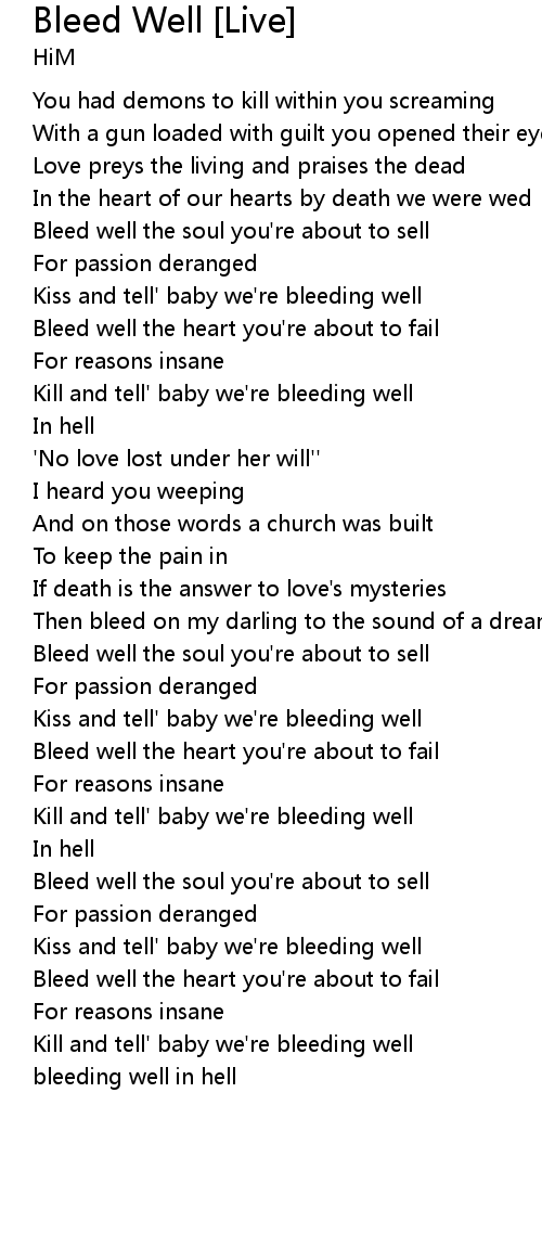 Kiss and tell' baby we're bleeding well |