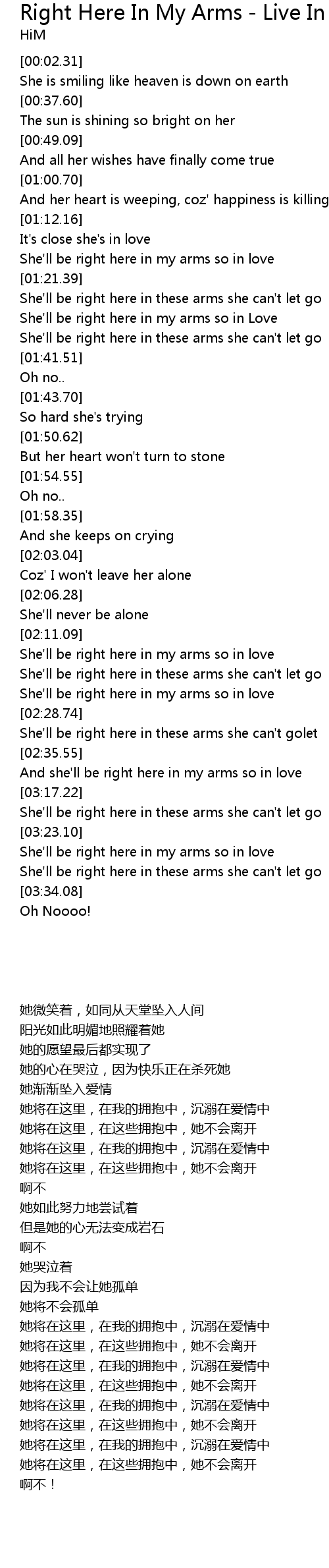 She'll be right here in my arms so in Love |