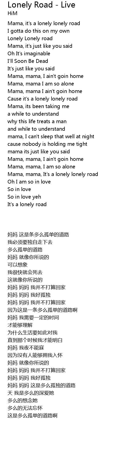 Mama, it's a lonely lonely road |