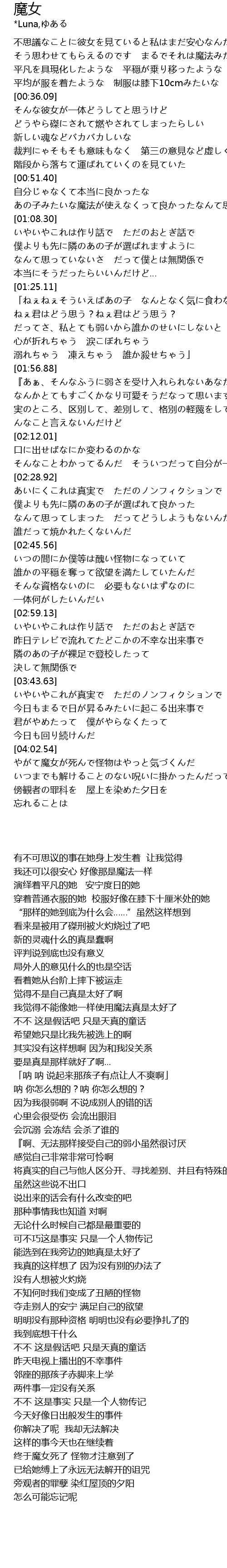 | [04:02.69] | やがて魔女が死んで怪物はやっと気づくんだ |