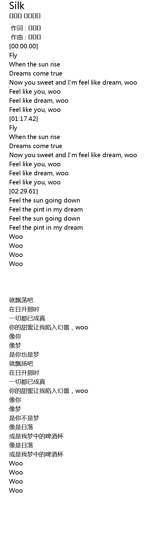 | [02:15.64] | Feel like dream, woo |