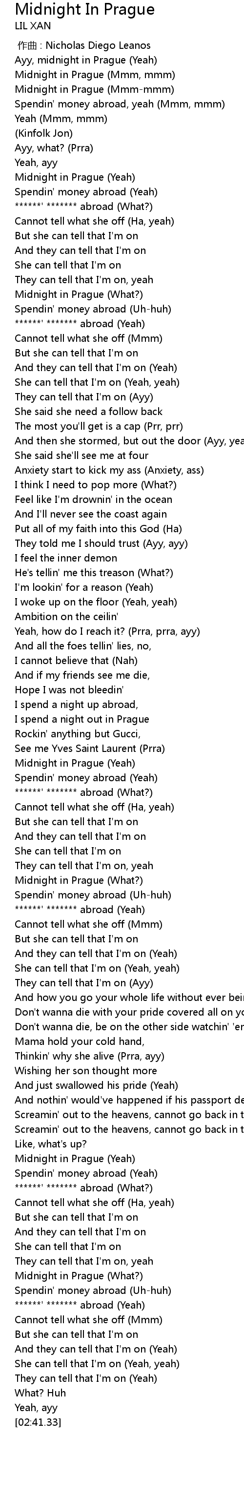| [02:08.15] | Midnight in Prague (Yeah) |