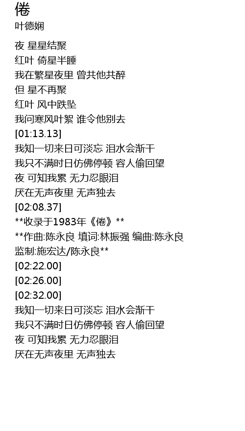 | [02:14.00] | **收录于1983年《倦》** |