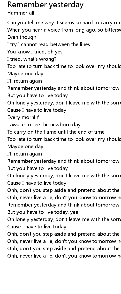 Oh lonely yesterday, don't leave me with the sorrow' |