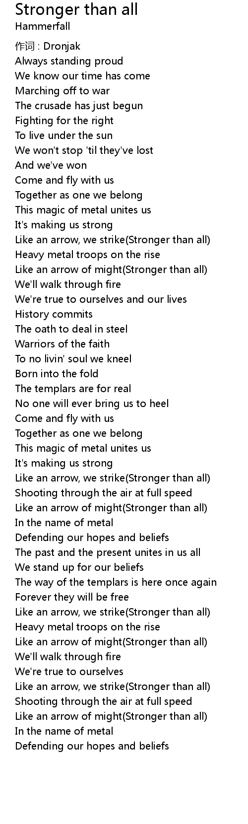 | Song | Stronger than all |