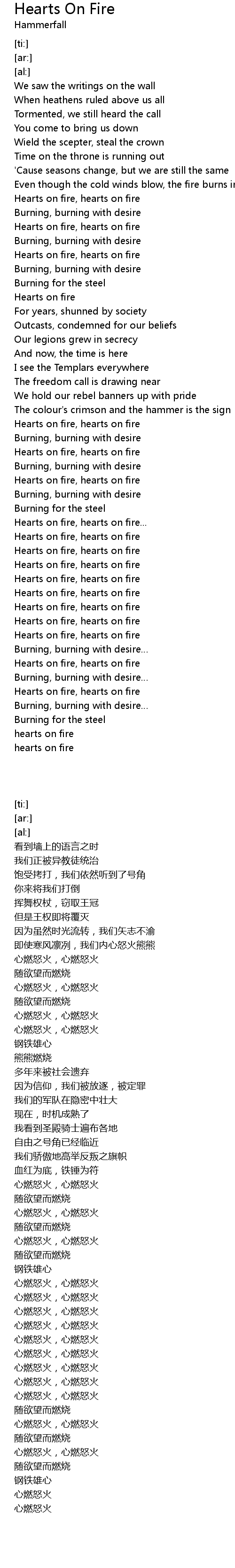 | [03:31.63] | Hearts on fire, hearts on fire |