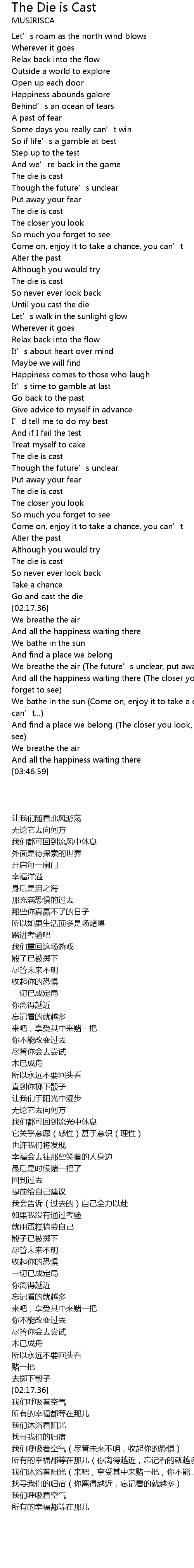 | [01:52.36] | The die is cast |