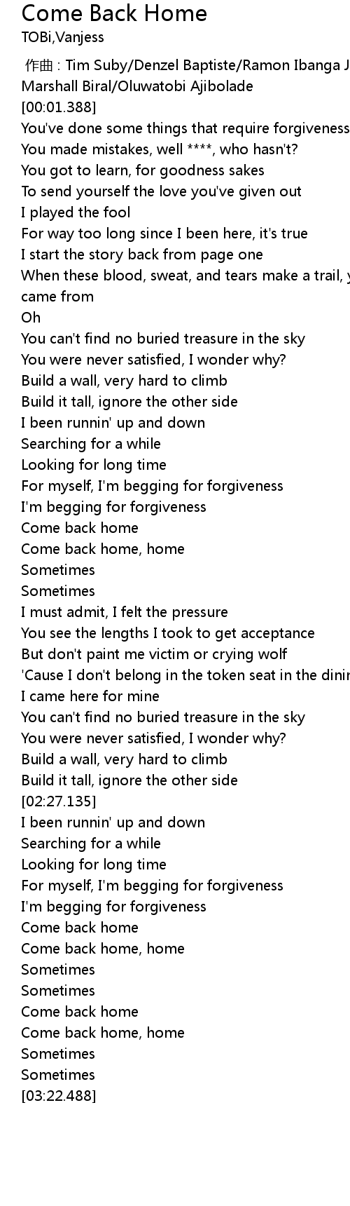| [00:00.000] | zuò qǔ : Tim Suby Denzel Baptiste Ramon Ibanga Jr. David Charles Marshall Biral Oluwatobi Ajibolade |