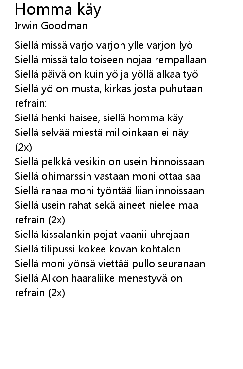 | Song | Homma käy |