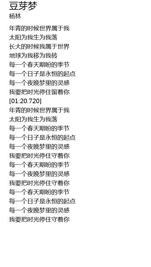 | [01:35.600] | 年青的时候世界属于我 |