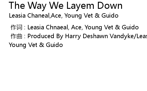 | [00:00.000] | 作曲 : Produced By Harry Deshawn Vandyke/Leasia Chnaeal, Ace, Young Vet & Guido |