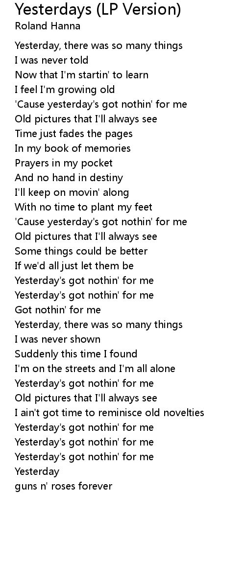 'Cause yesterday's got nothin' for me |