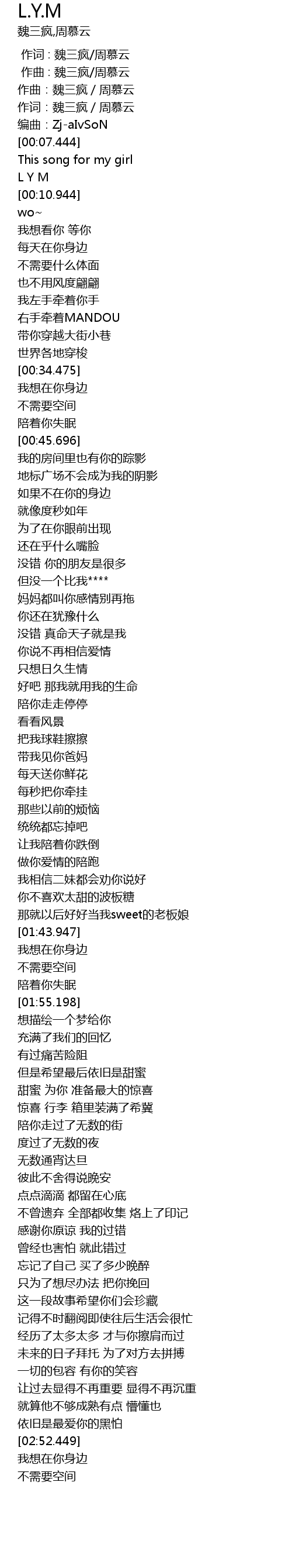 | [00:02.445] | zuo qu: wei san feng zhou mu yun |