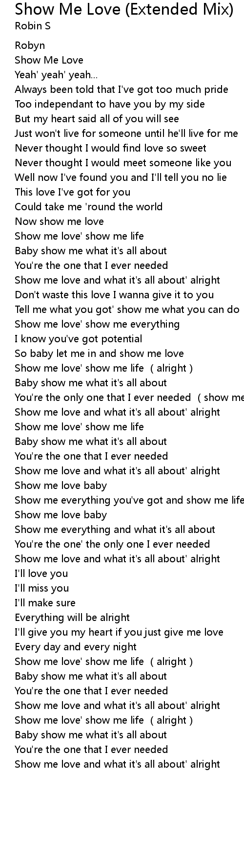 | [01:27] | Show me love' show me everything |