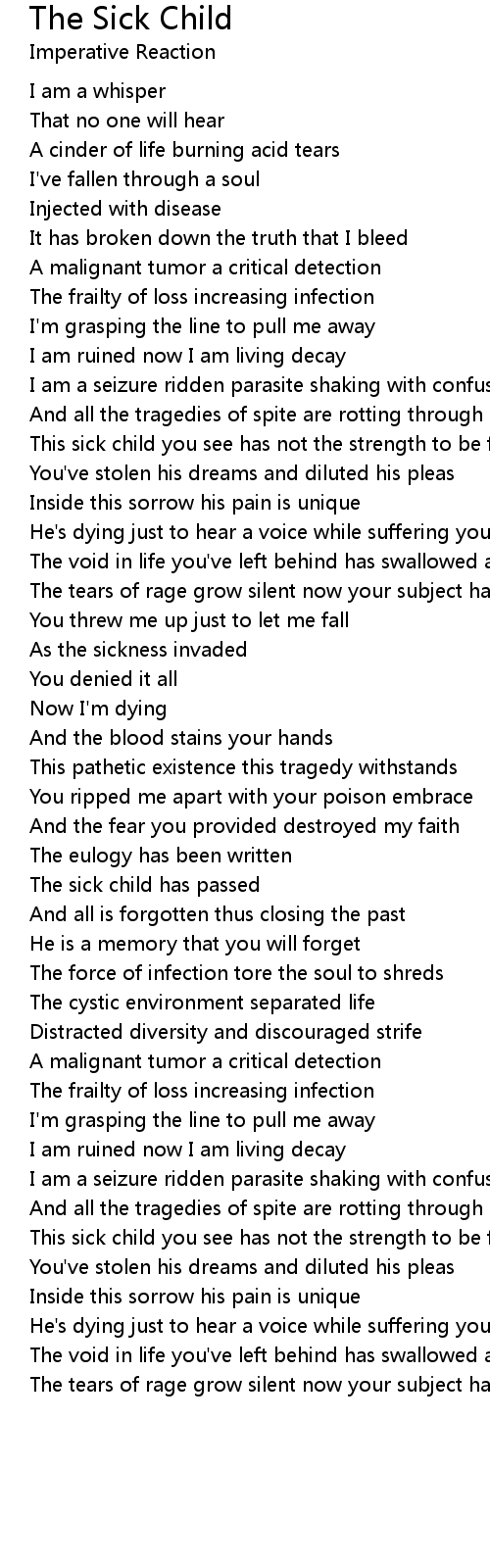 This sick child you see has not the strength to be free |