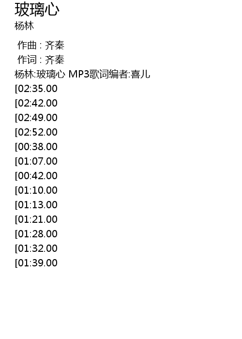 | [00:00.00] | 杨林:玻璃心 MP3歌词编者:喜儿 |