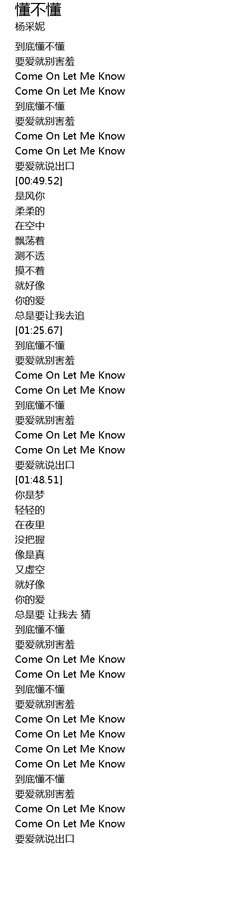 | [01:30.97] | Come On Let Me Know |