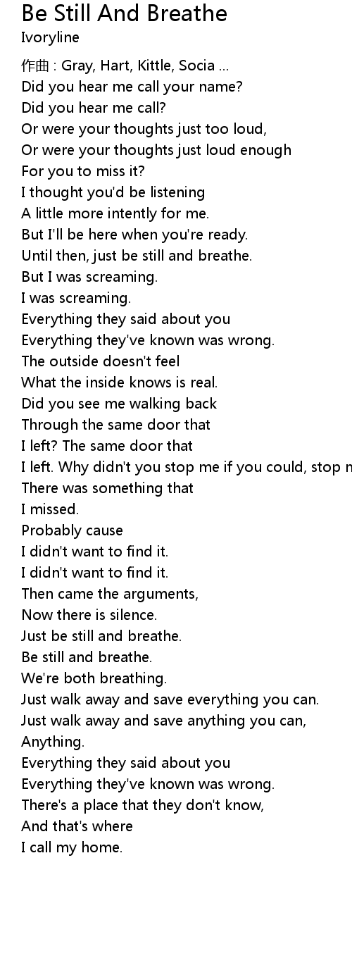 | Song | Be Still And Breathe |