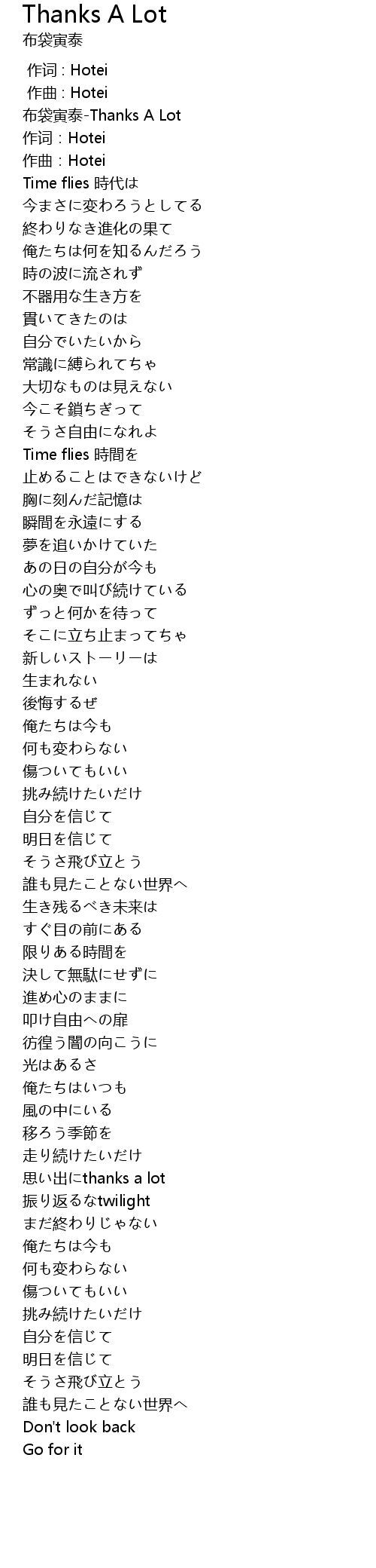 | [00:00.00] | 布袋寅泰-Thanks A Lot |
