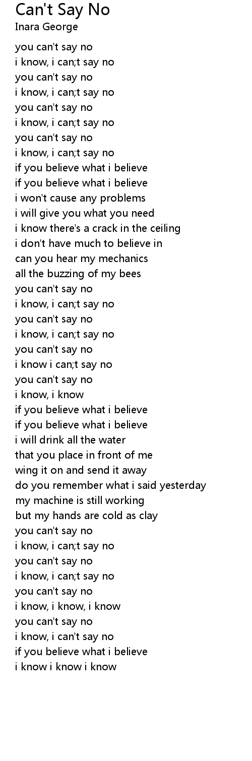 i know i can;t say no |