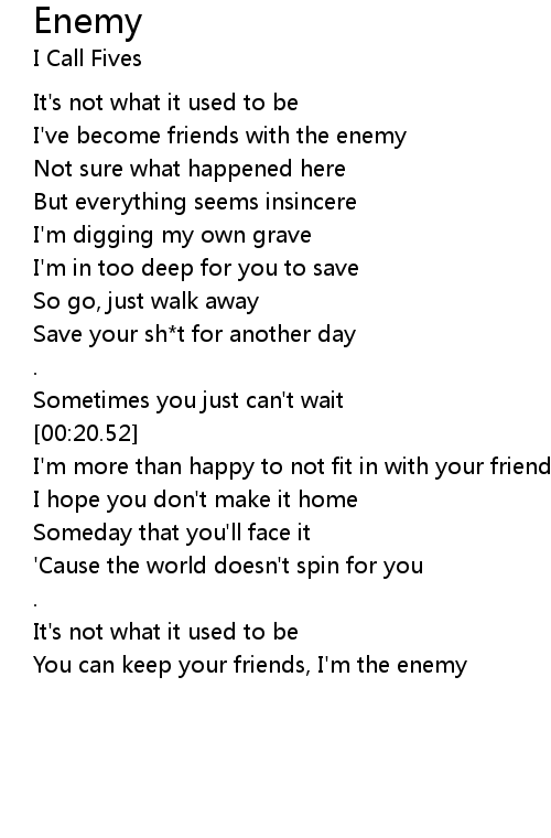 You can keep your friends, I'm the enemy |