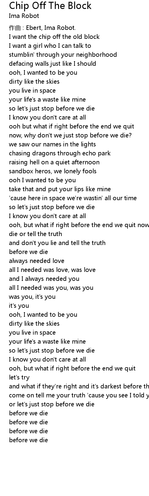 | Song | Chip Off The Block |