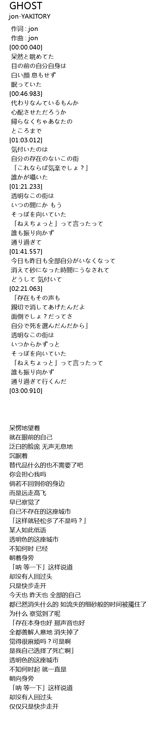| [01:56.042] | 今日も昨日も全部自分がいなくなって |