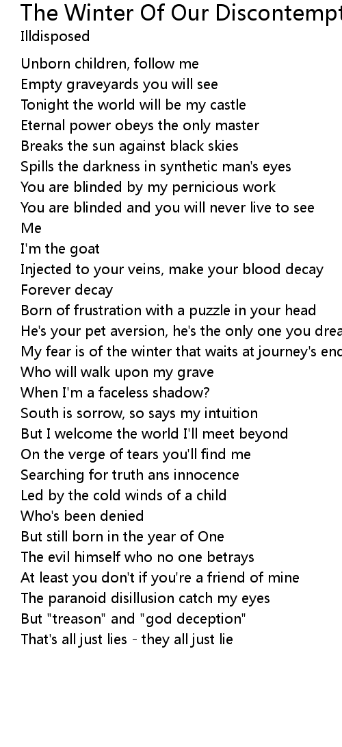 My fear is of the winter that waits at journey's end |