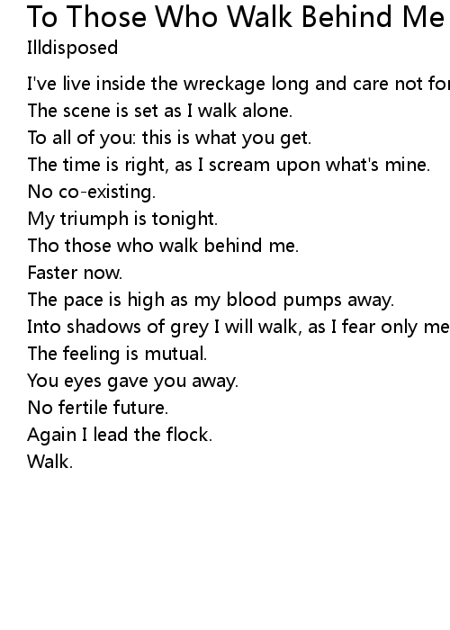 | Tho those who walk behind me. | |