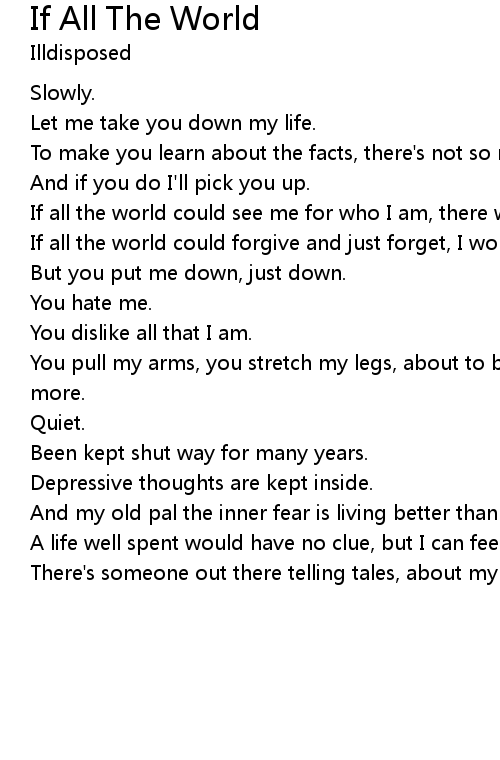 If all the world could forgive and just forget, I wouldn't mind to carry on. |