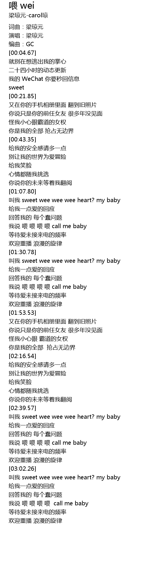 | [03:02.86] | 叫我 sweet wee wee wee heart? my baby |