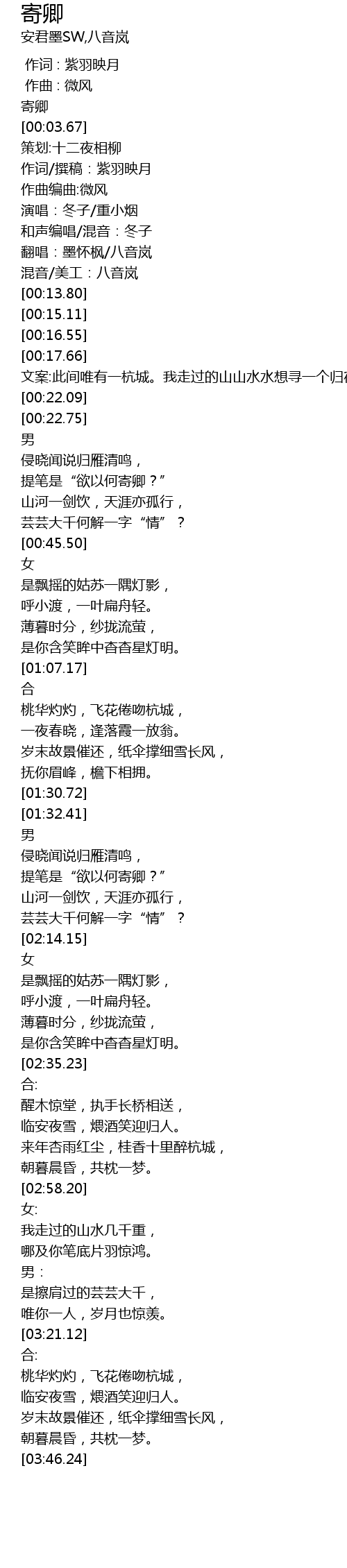| [00:29.94] | 提笔是“欲以何寄卿?” |