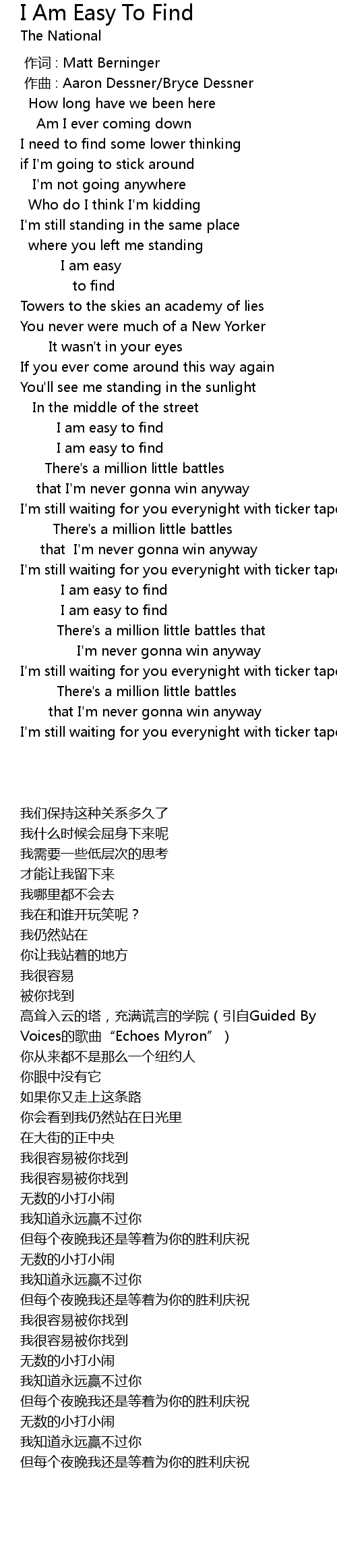 | [00:01.000] | 作曲 : Aaron Dessner/Bryce Dessner |